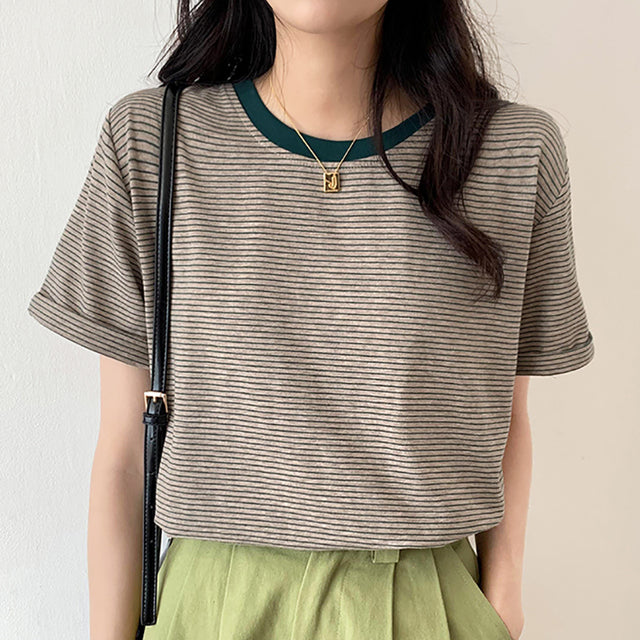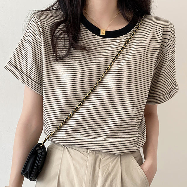 • Summer Classic Striped T Shirt Women Short Sleeve Korean Style Patchwork Casual Loose Tee Shirt Femme Womens Tops Camiseta Mujer