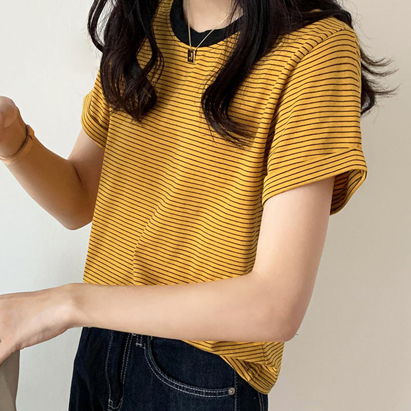 Summer Classic Striped T Shirt Women Short Sleeve Korean Style Patchwork Casual Loose Tee Shirt Femme Womens Tops Camiseta Mujer